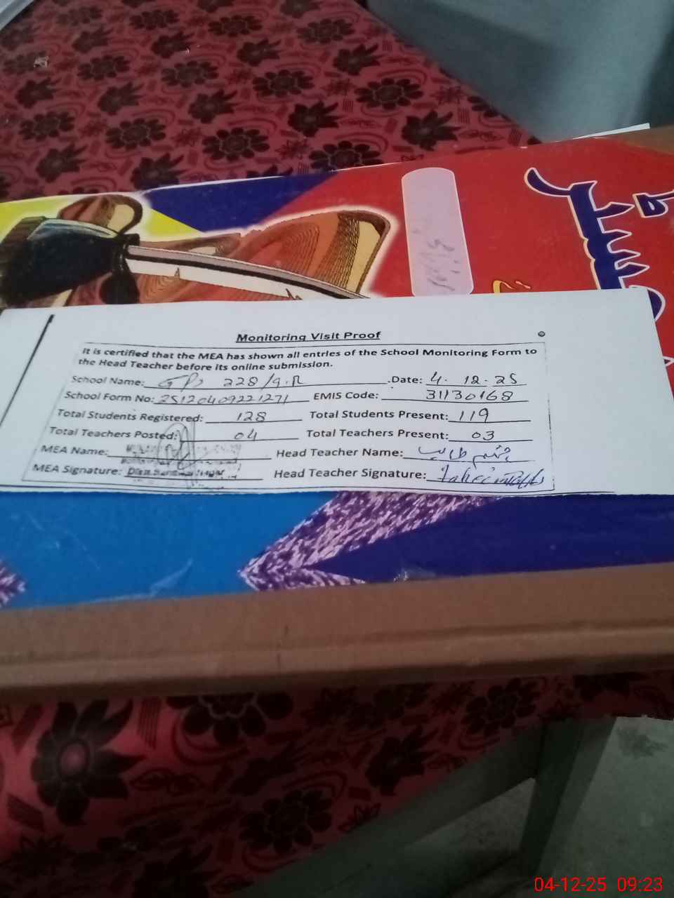 | EMIS Code: 31130168 | Name of School: GPS CHAK 228/9-R | |||