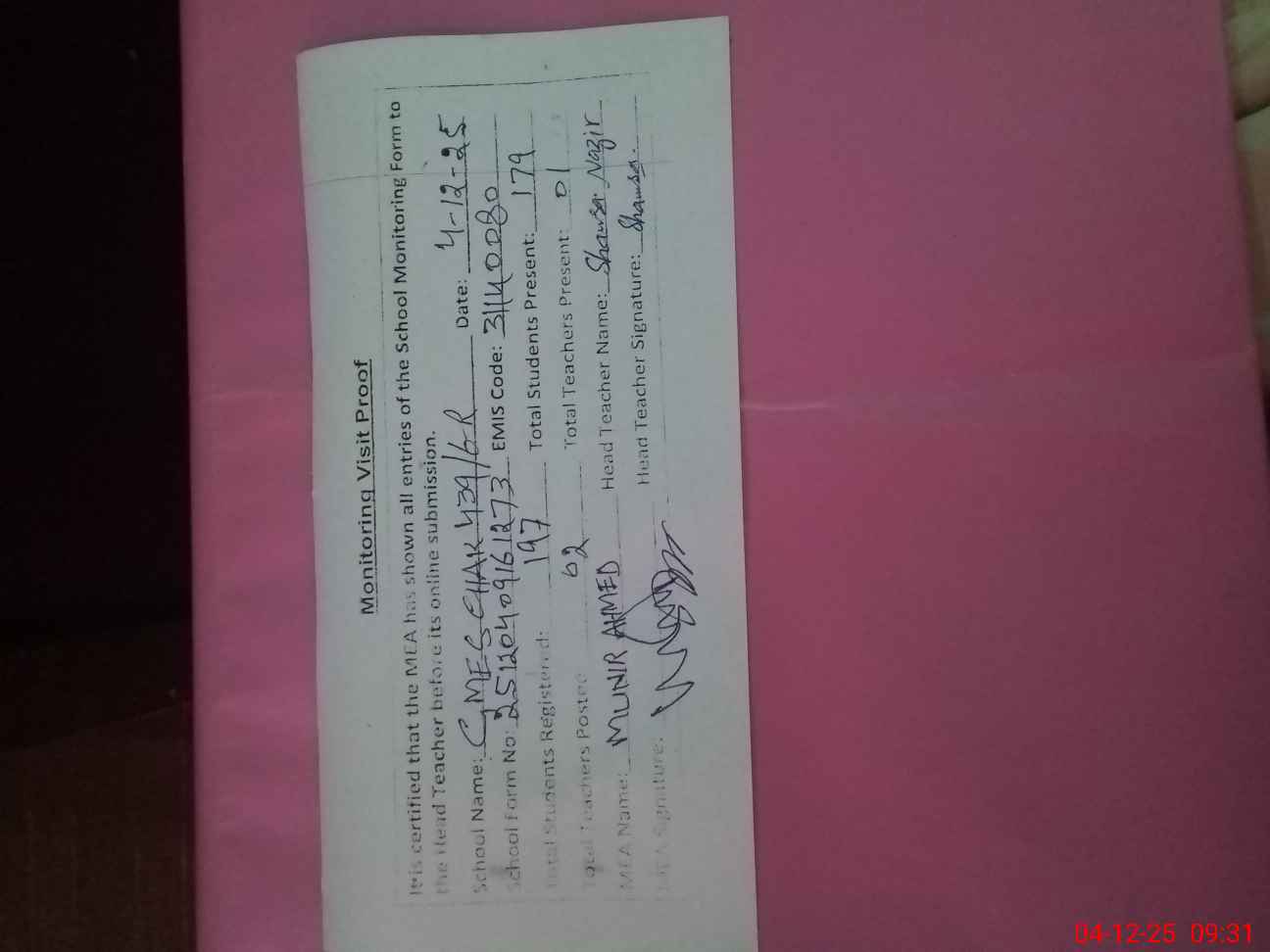 | EMIS Code: 31140080 | Name of School: GMES CHAK NO. 439/6-R | |||