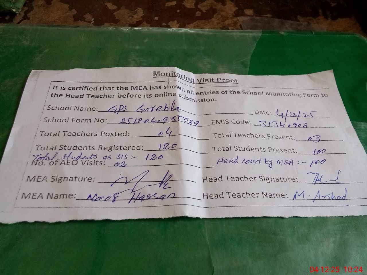 | EMIS Code: 31340908 | Name of School: GPS GHORELA | |||