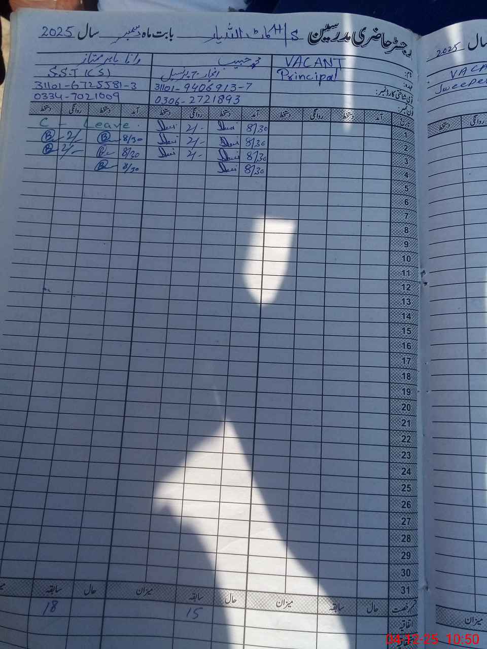 | Name: MU**** HA**** Designation: (School Headmaster's/Headmistress's) SST SCI Phone/Cell Number: 03**** |