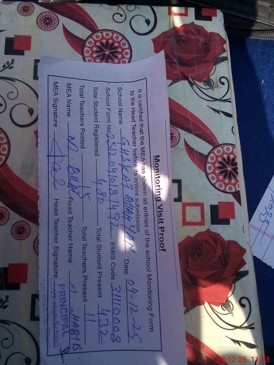 | EMIS Code: 31110008 | Name of School: GHS KAT ALLAH YAR | |||