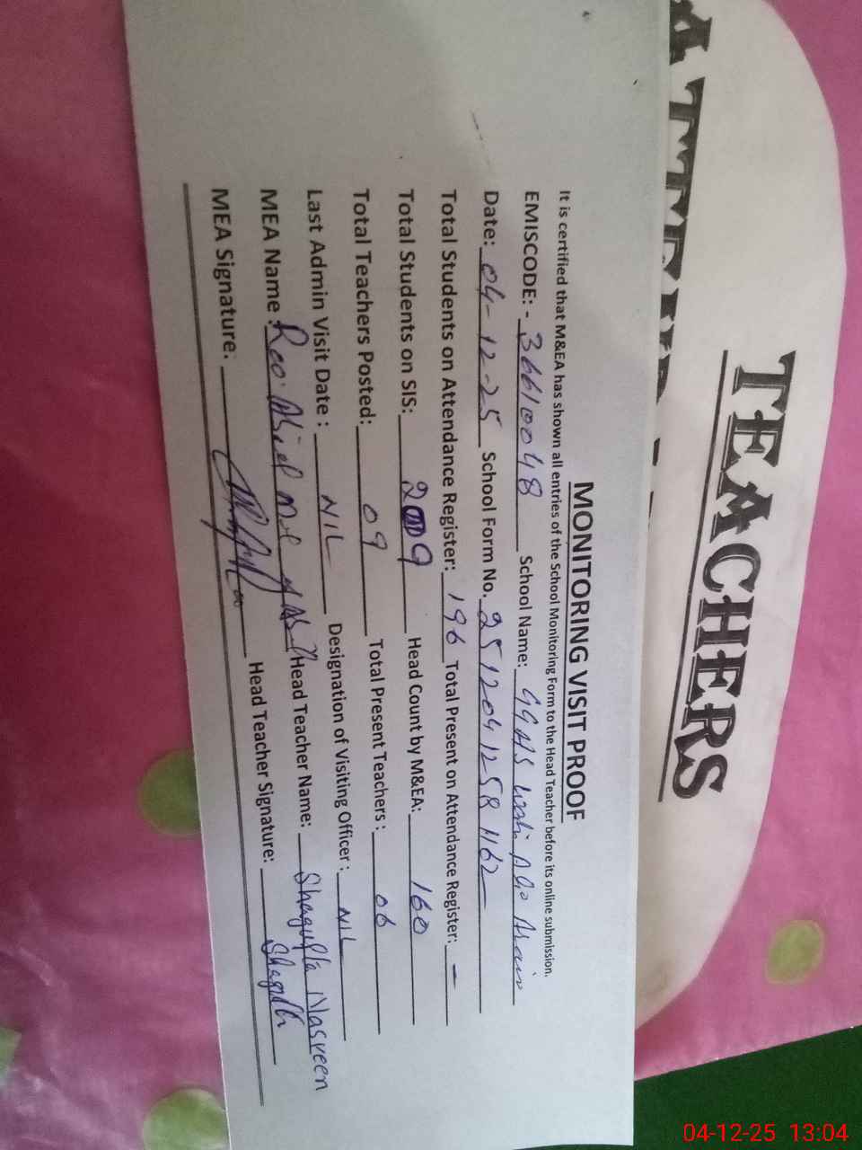 | EMIS Code: 36610048 | Name of School: GGHS WAHI ALI ARAIN | |||