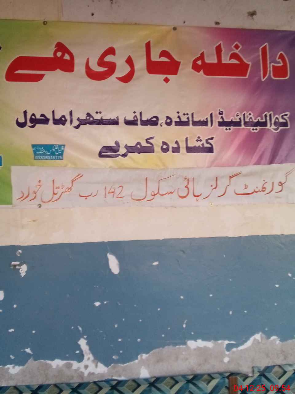 | EMIS Code: 33150197 | Name of School: GGHS CHAK NO 142 RB | |||