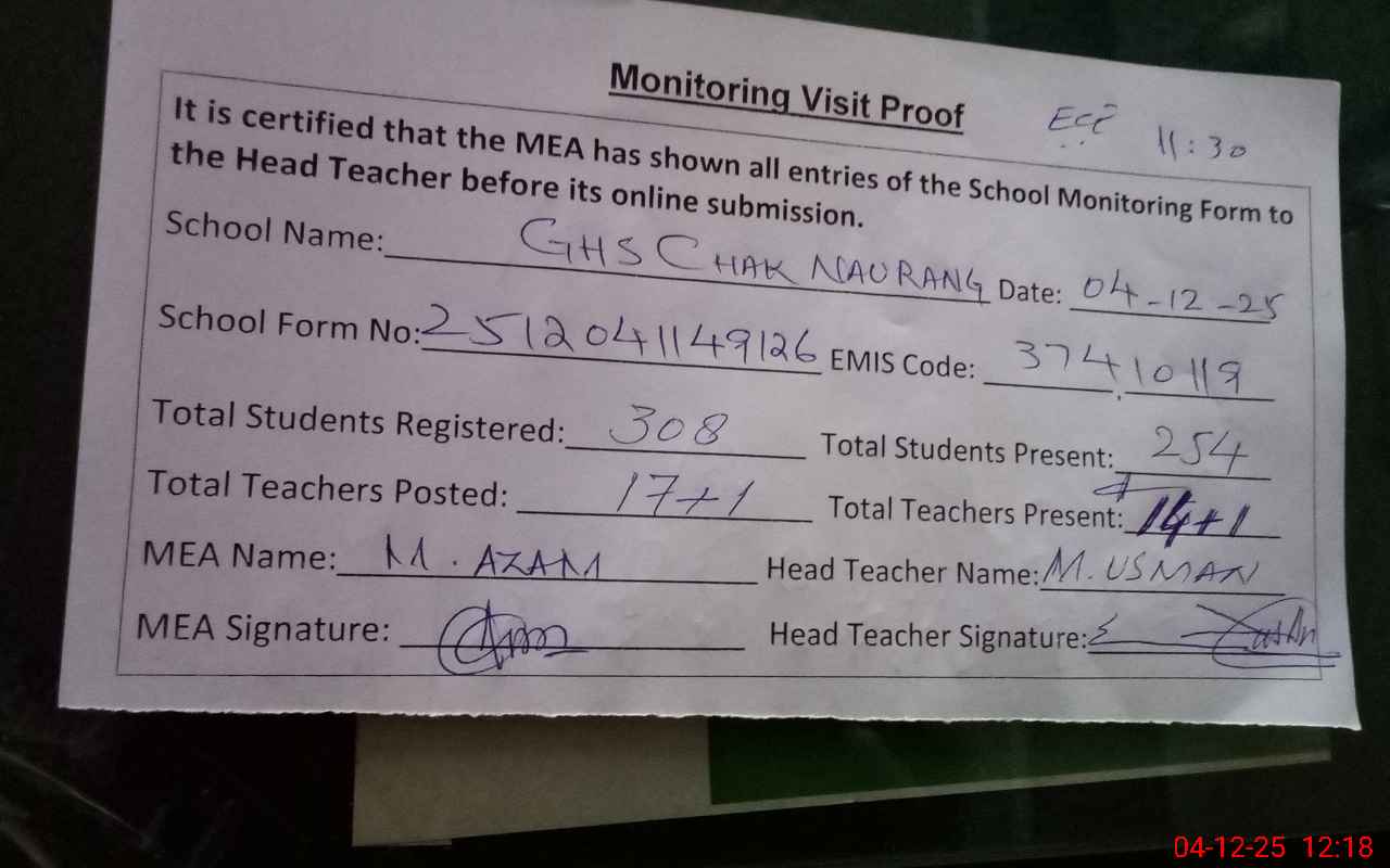 | EMIS Code: 37410119 | Name of School: GHS CHAK NAURANG | |||