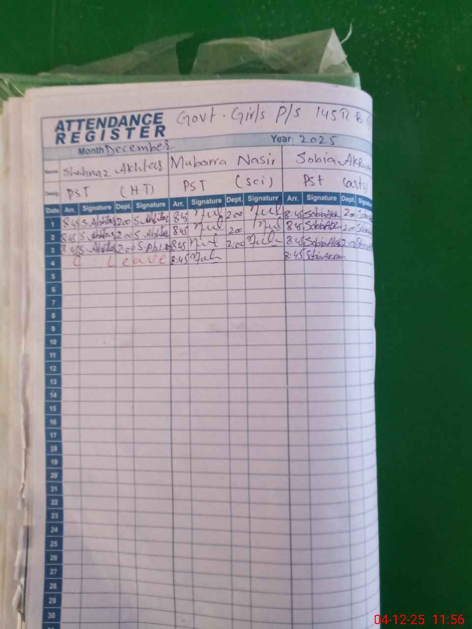 | 33**** | Sh**** Ak**** | PST Arts | Regular | 0 | 0 | 0 | 0 | 0 | 0 | 0 | 0 | 0 | Casual |