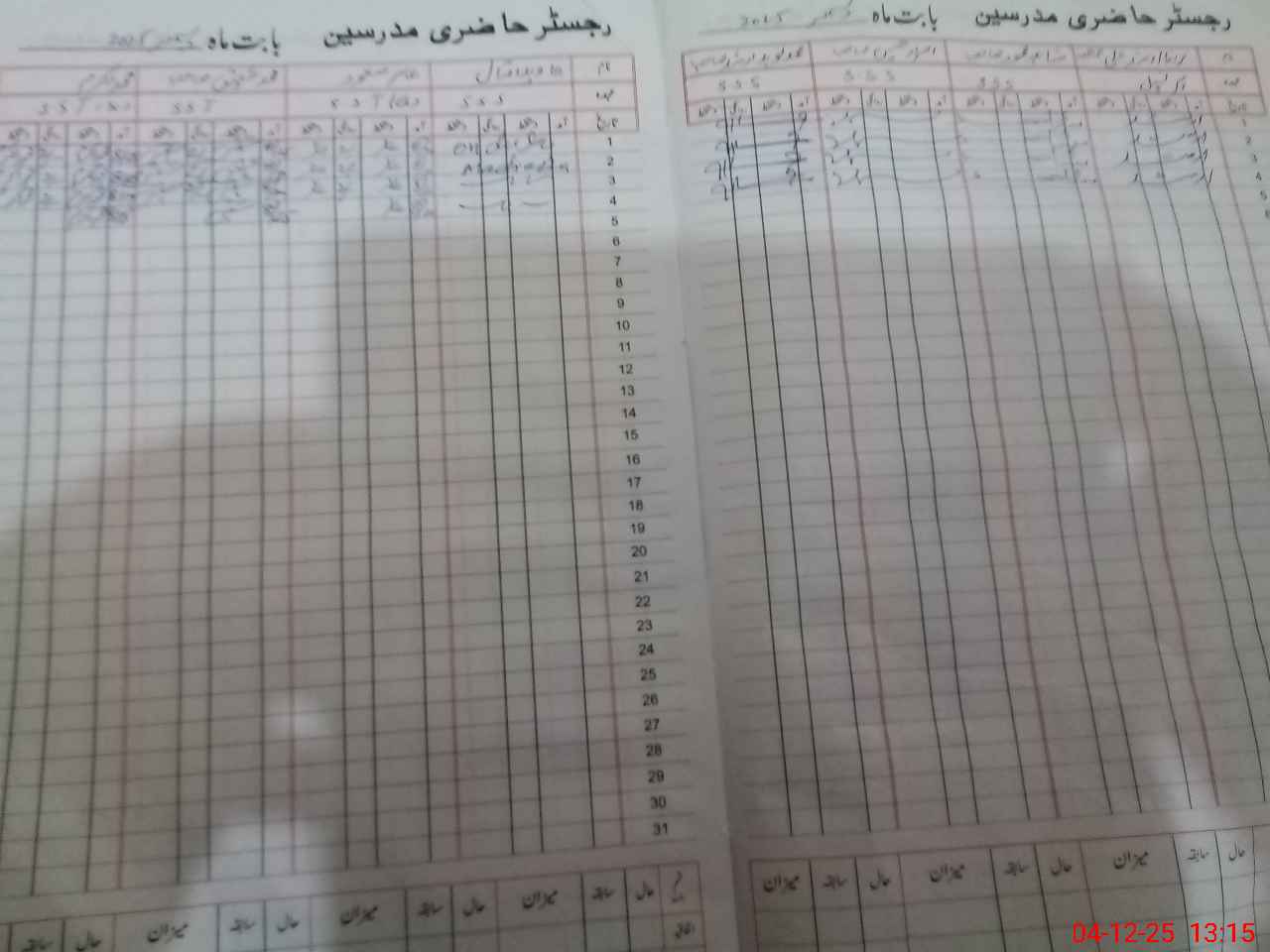 | CNIC | Full Name | Designation | R/C | Absence During Last Calender Month |