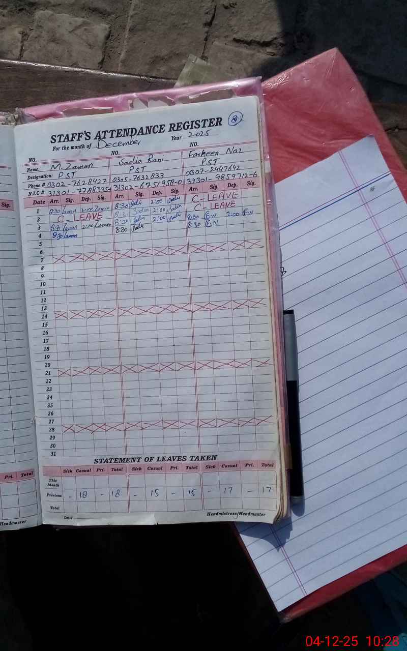 | Name: Ra**** Ak**** Designation: (School Headmaster's/Headmistress's) PST Phone/Cell Number: 03**** |