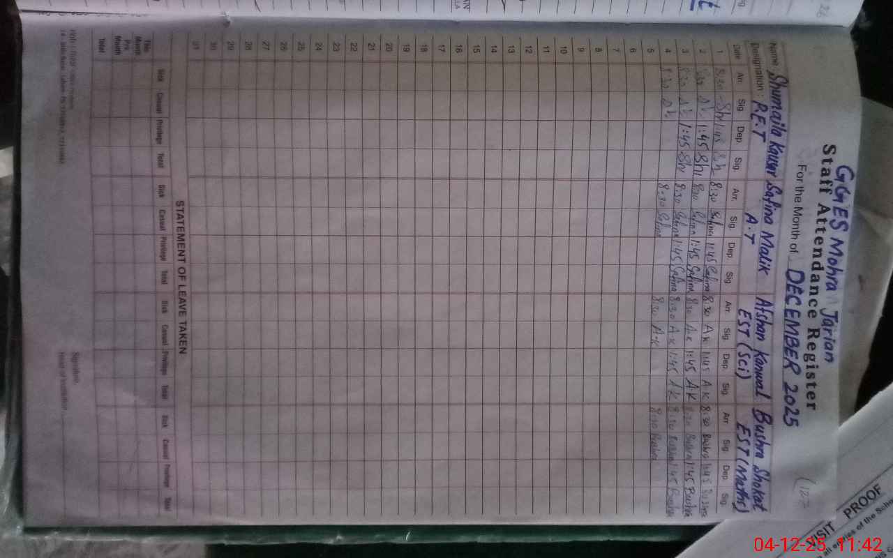 | EMIS Code: 37360108 | Name of School: GGES MOHRA JHARIAN BABA KARAM | |||