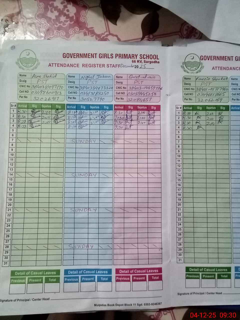 | Name: AS**** SH**** Designation: (School Headmaster's/Headmistress's) PST Phone/Cell Number: 03**** |