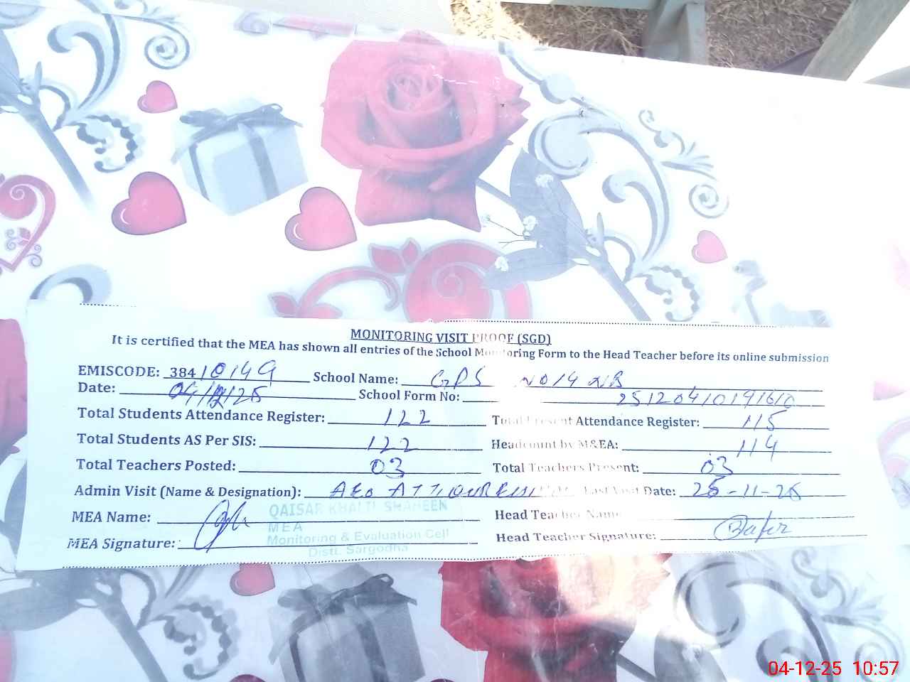 | EMIS Code: 38410149 | Name of School: GPS CHAK NO.14 NB | |||