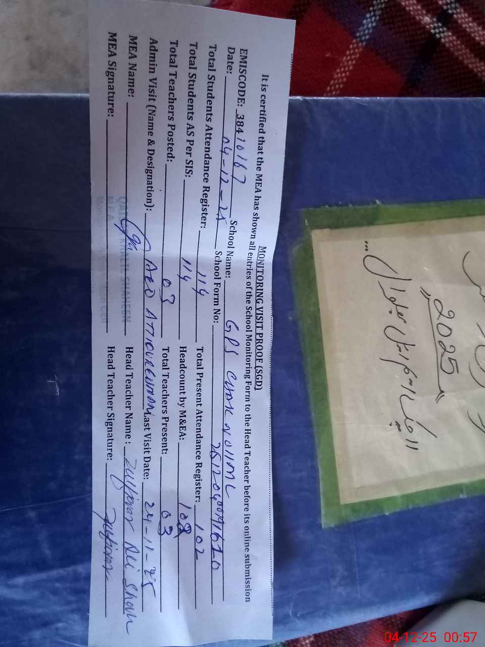 | Certified that this School was Inspected by the Undersigned MEA/DMO Today and the Information Stated Above is as Per Record. | |||||