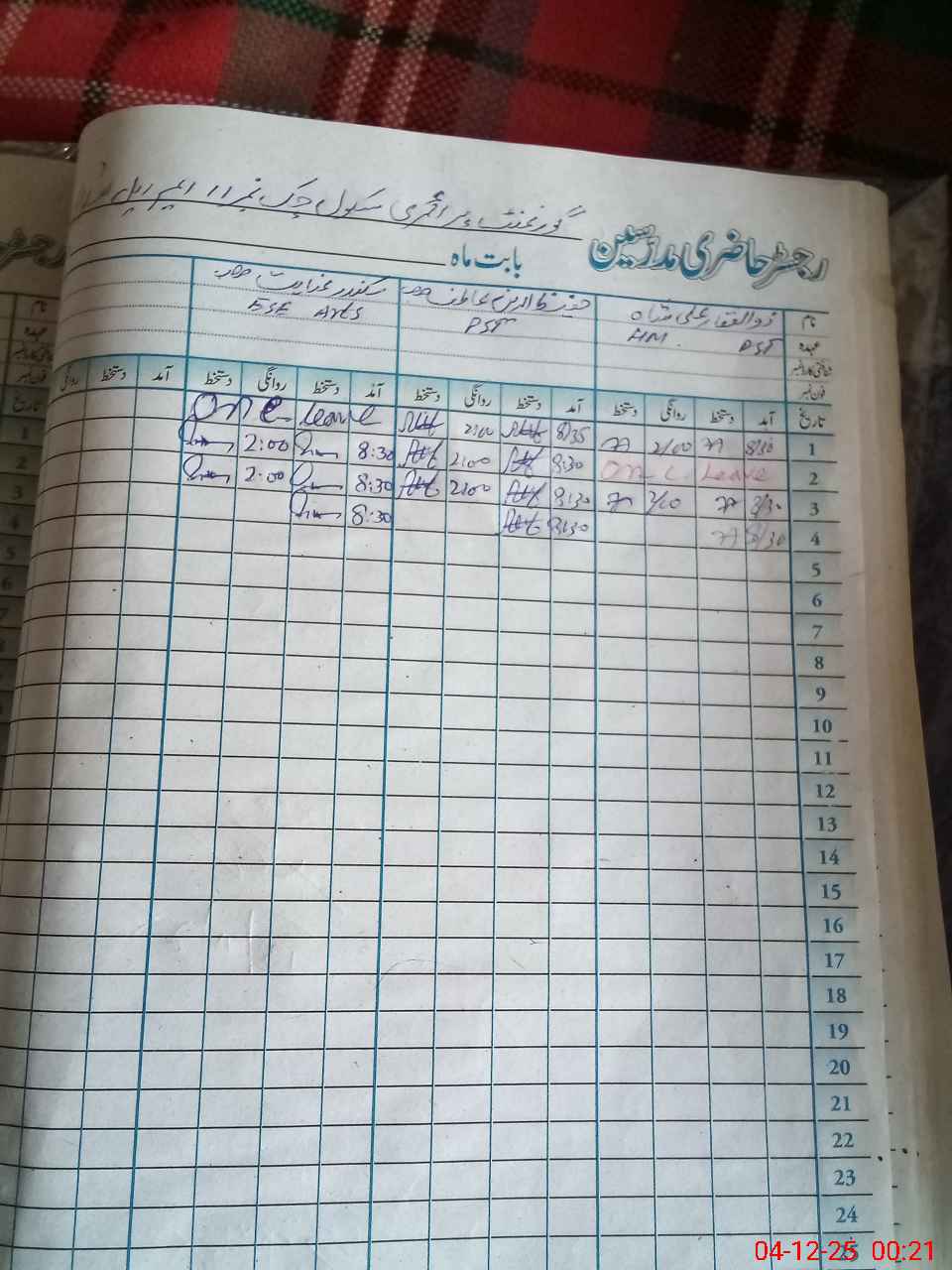 | Name: ZU**** AL**** SH**** Designation: (School Headmaster's/Headmistress's) PST Phone/Cell Number: 03**** |