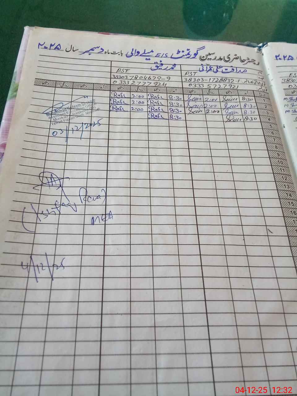 | Name: Mu**** Me**** Designation: (School Headmaster's/Headmistress's) SSE Phone/Cell Number: 03**** |