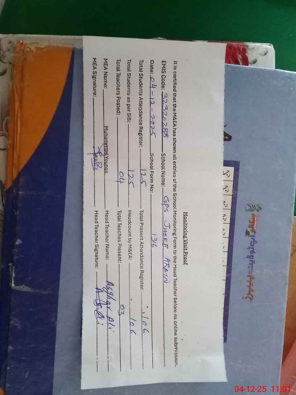 | EMIS Code: 32320288 | Name of School: GPS JHOKE ARAIN | |||