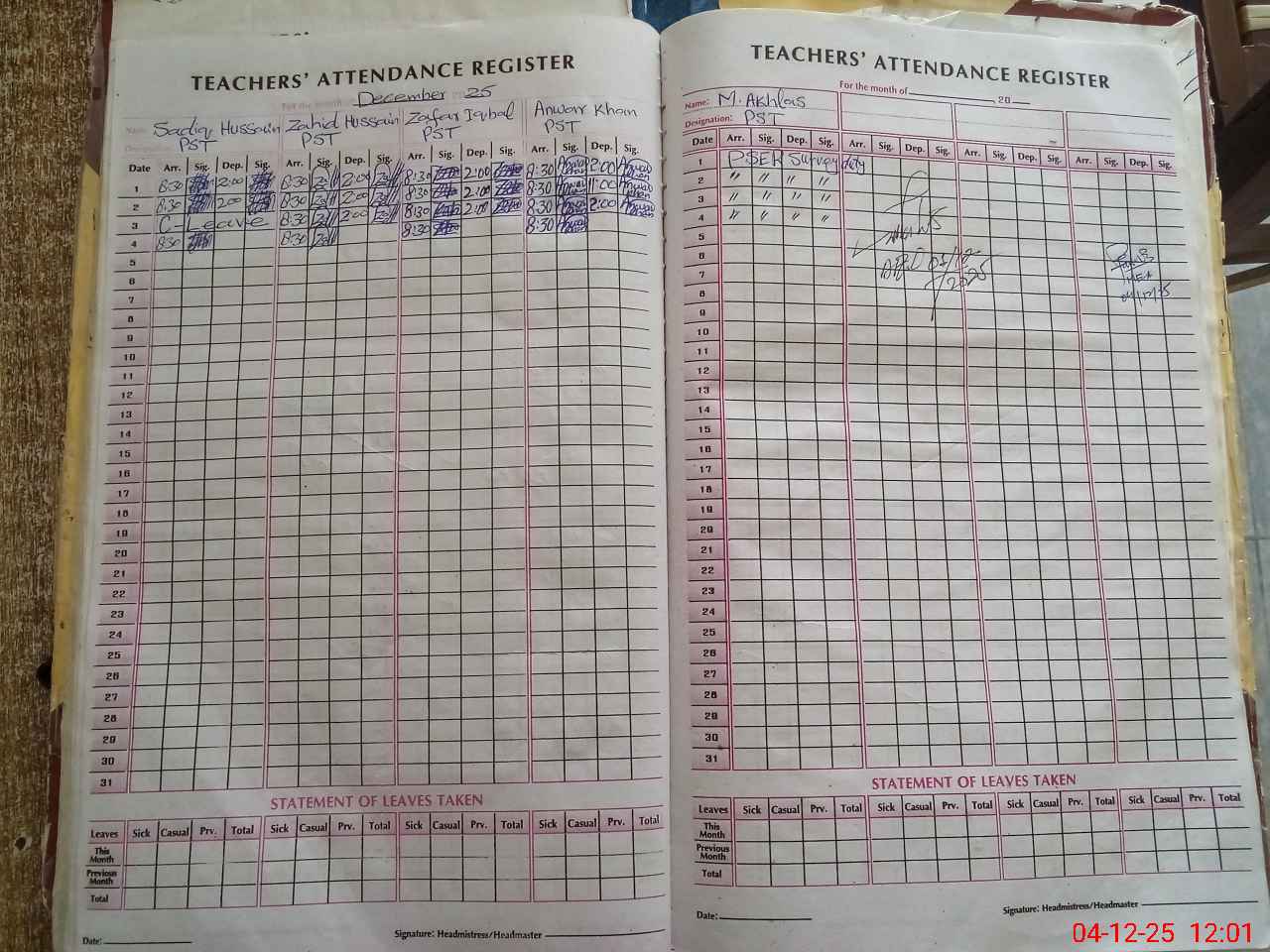 | Name: SA**** HU**** Designation: (School Headmaster's/Headmistress's) PST Phone/Cell Number: 03**** |