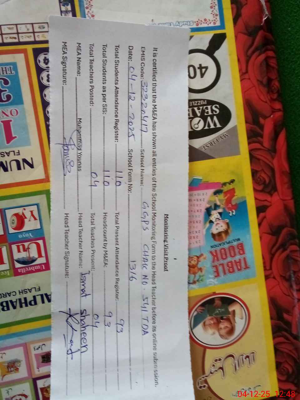 | EMIS Code: 32320417 | Name of School: GGPS CHAK NO. 541 TDA | |||