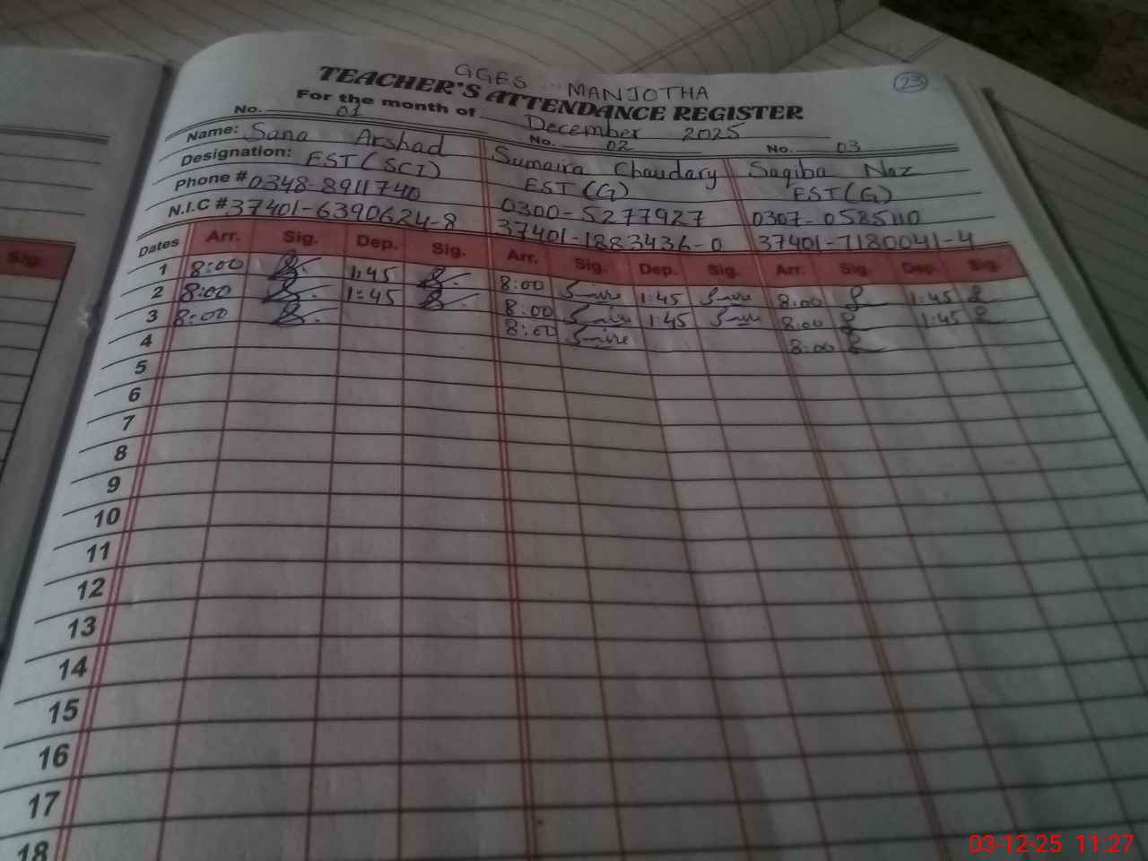 | Name: Hi**** Na**** Designation: (School Headmaster's/Headmistress's) SST Phone/Cell Number: 03**** |