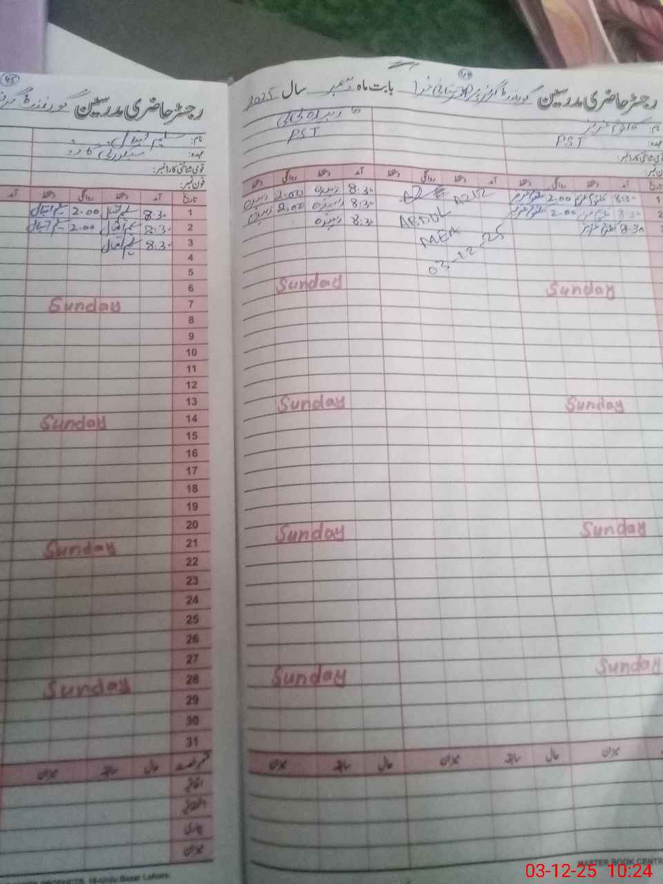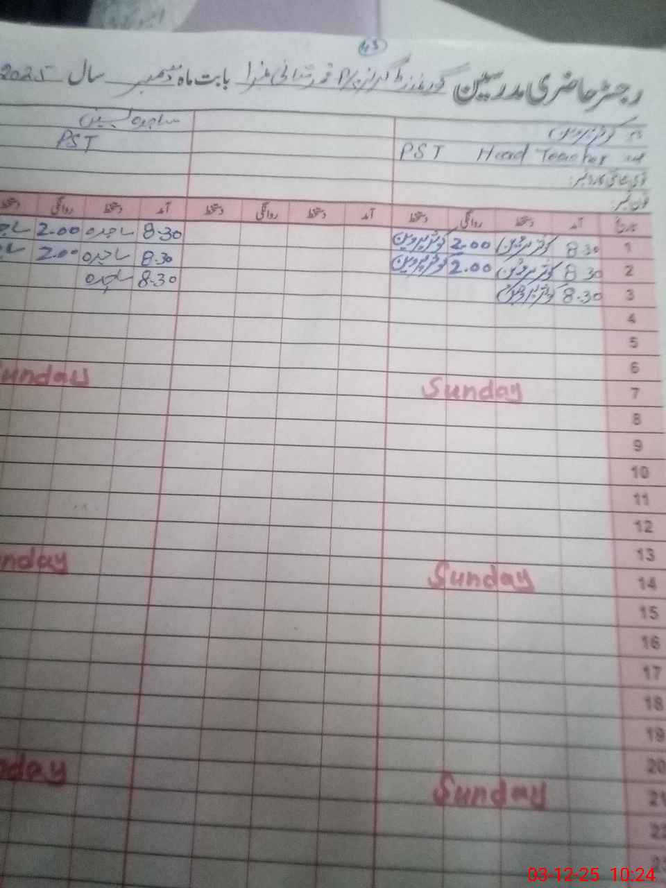 | CNIC | Full Name | Designation | R/C | Absence During Last Calender Month |