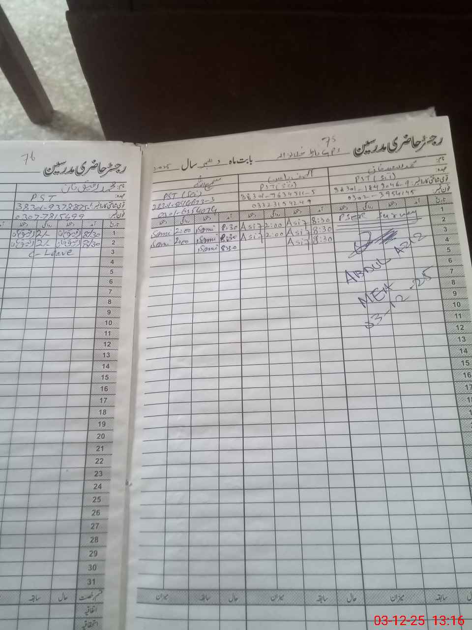 | Name: As**** Ya**** Designation: (School Headmaster's/Headmistress's) PST Phone/Cell Number: 03**** |