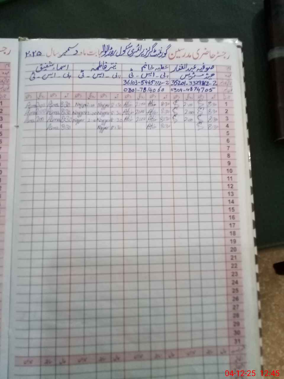 | District: LAHORE | Tehsil: CANTT | Markaz: BHANGALI - FEMALE | Level: Primary | |