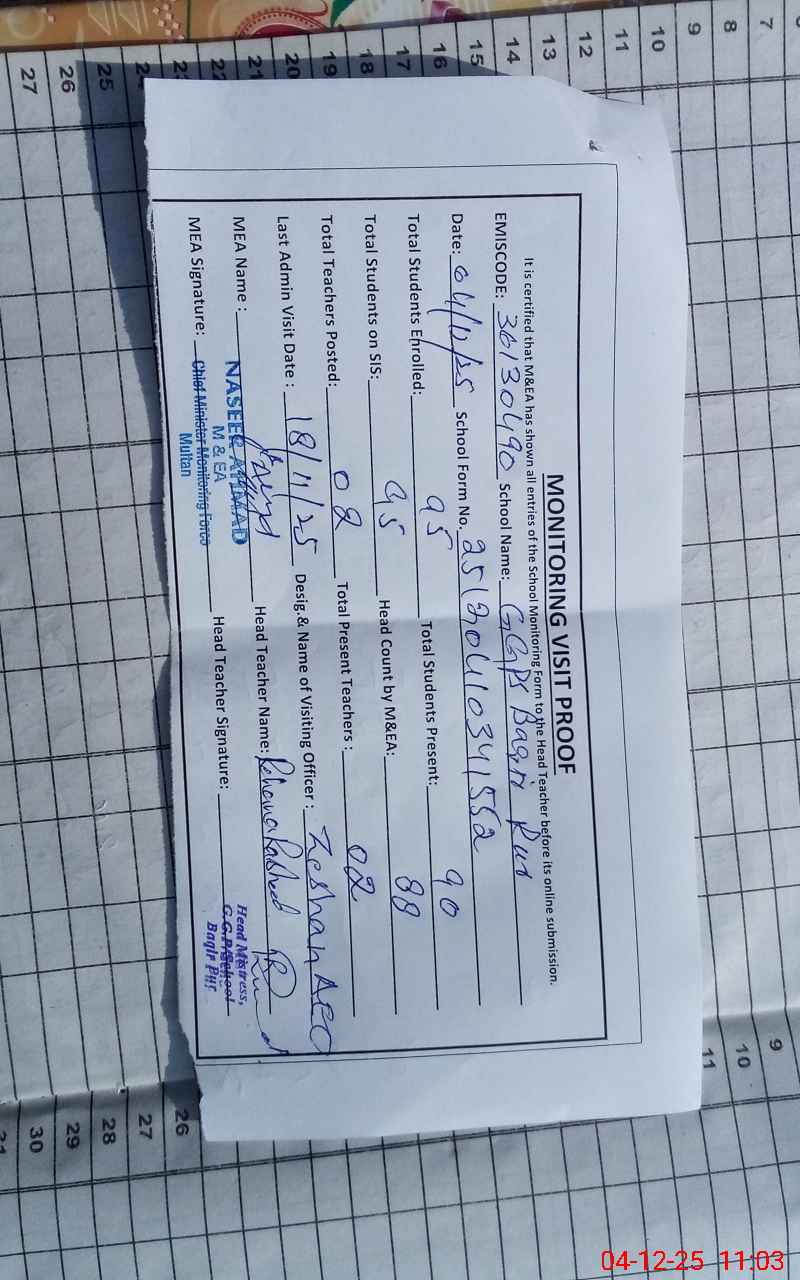 | EMIS Code: 36130490 | Name of School: GGPS BAQIR PUR | |||