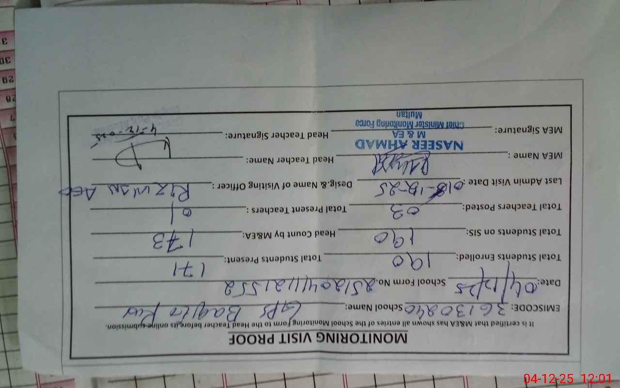 | EMIS Code: 36130240 | Name of School: GPS BAQIR PUR | |||