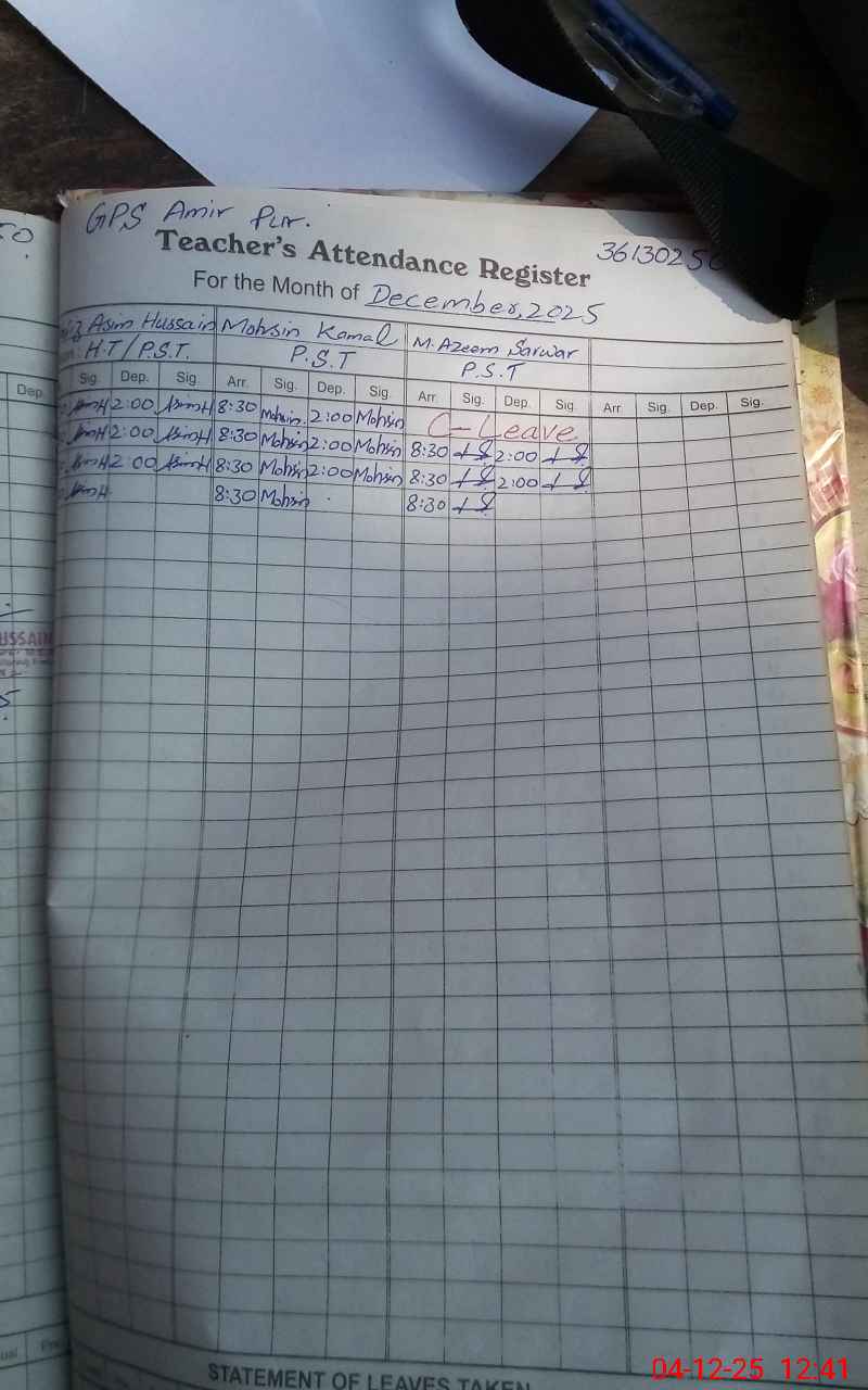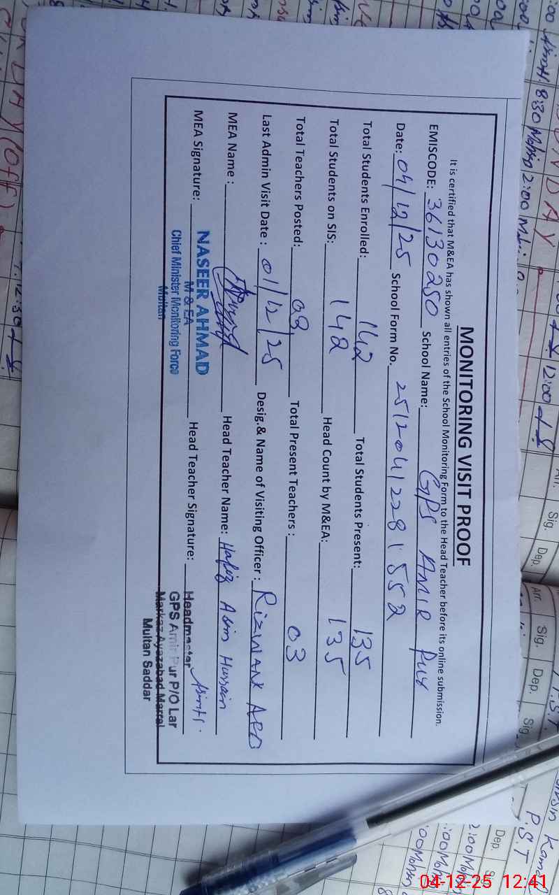 | EMIS Code: 36130250 | Name of School: GPS AMIR PUR P/O LAR | |||