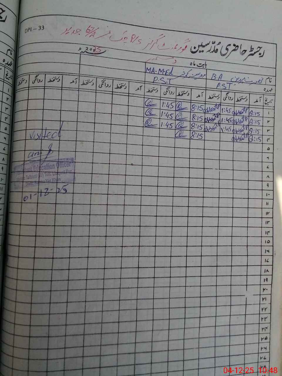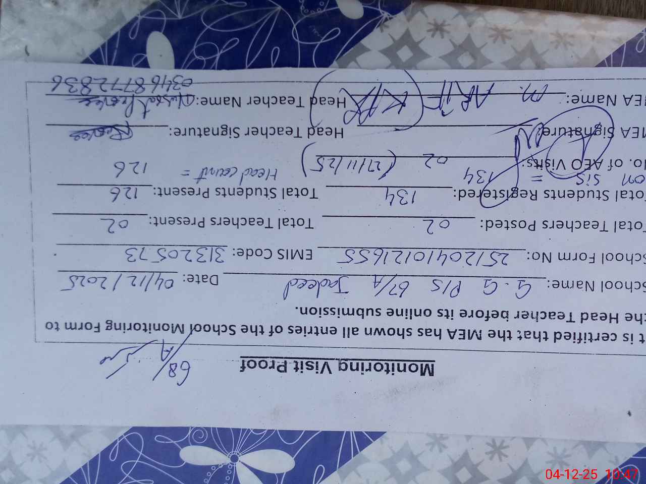 | Name: NU**** PA**** Designation: (School Headmaster's/Headmistress's) PST Phone/Cell Number: 03**** |