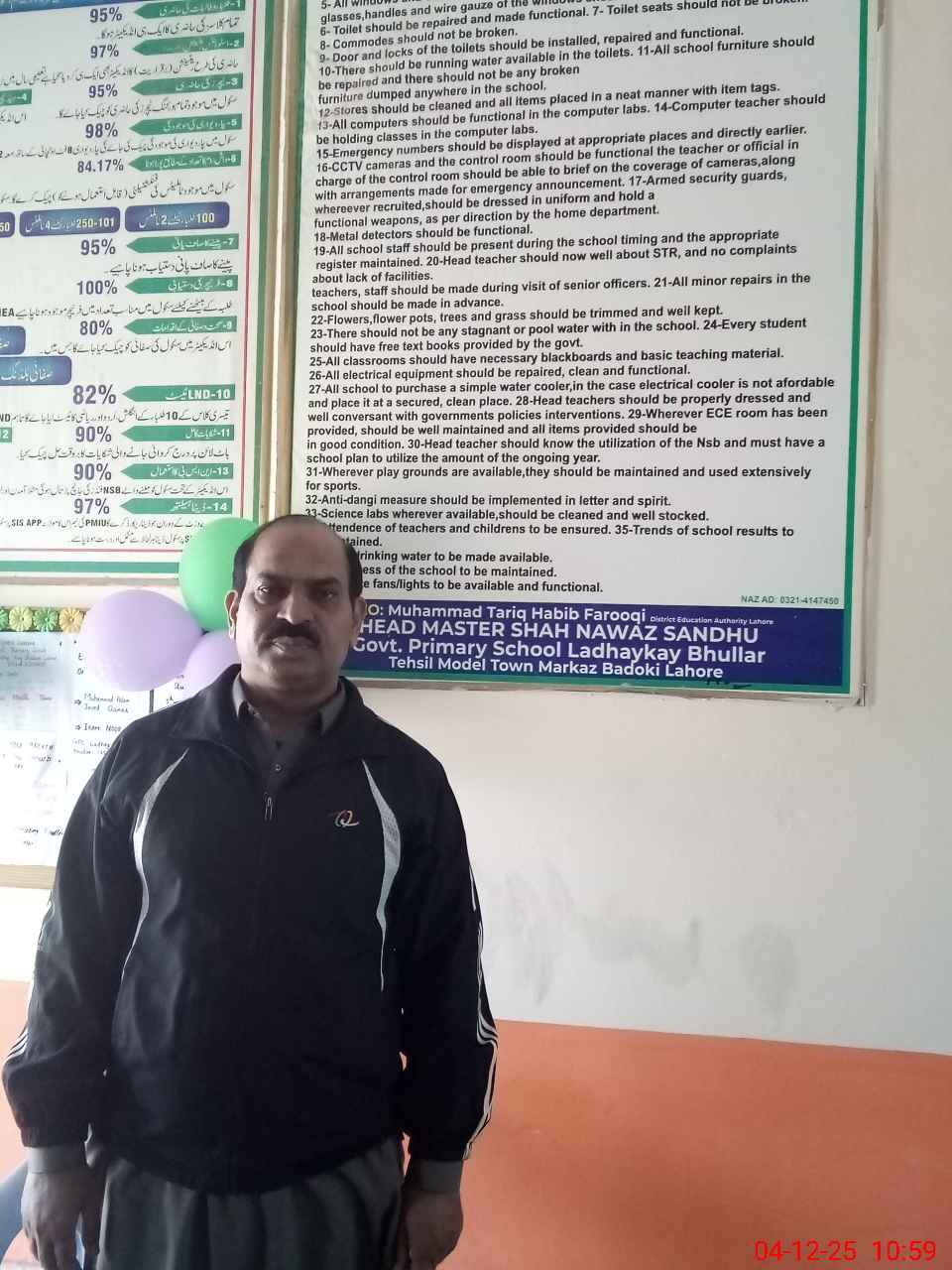 | Name: Sh**** Na**** Designation: (School Headmaster's/Headmistress's) Head Master Phone/Cell Number: 03**** |