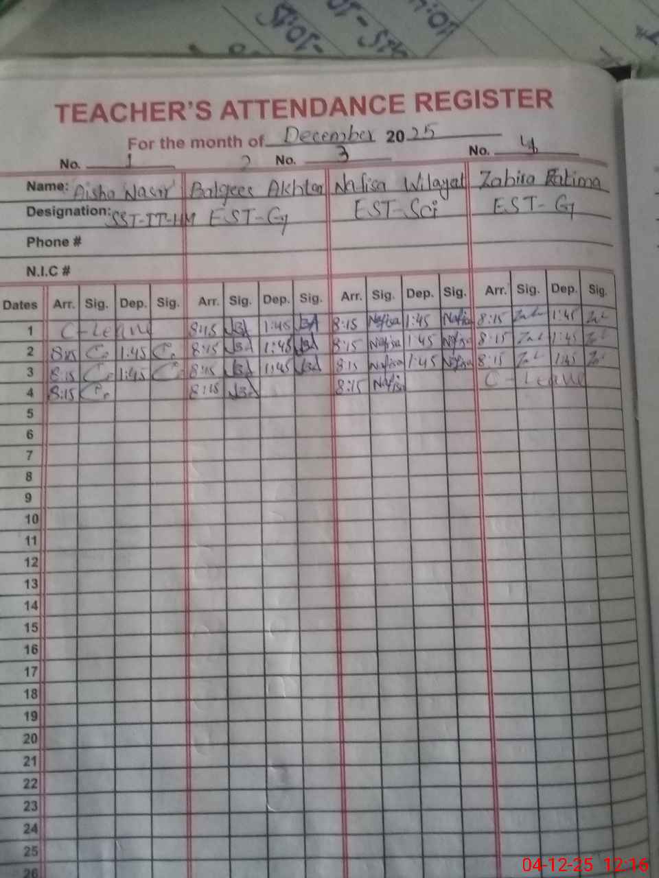 | 35**** | Sh**** Ba**** Kh**** | NQ | 0 | 0 | 0 | 0 | 0 | 0 | 0 | 0 | 0 | Absent (Un-Authorized) | |