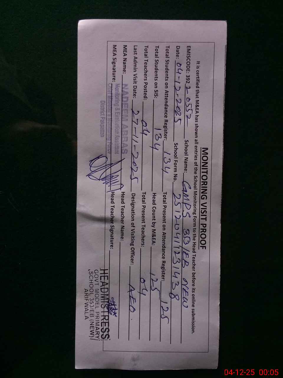 | EMIS Code: 39220552 | Name of School: GMPS 353/EB NEW | |||