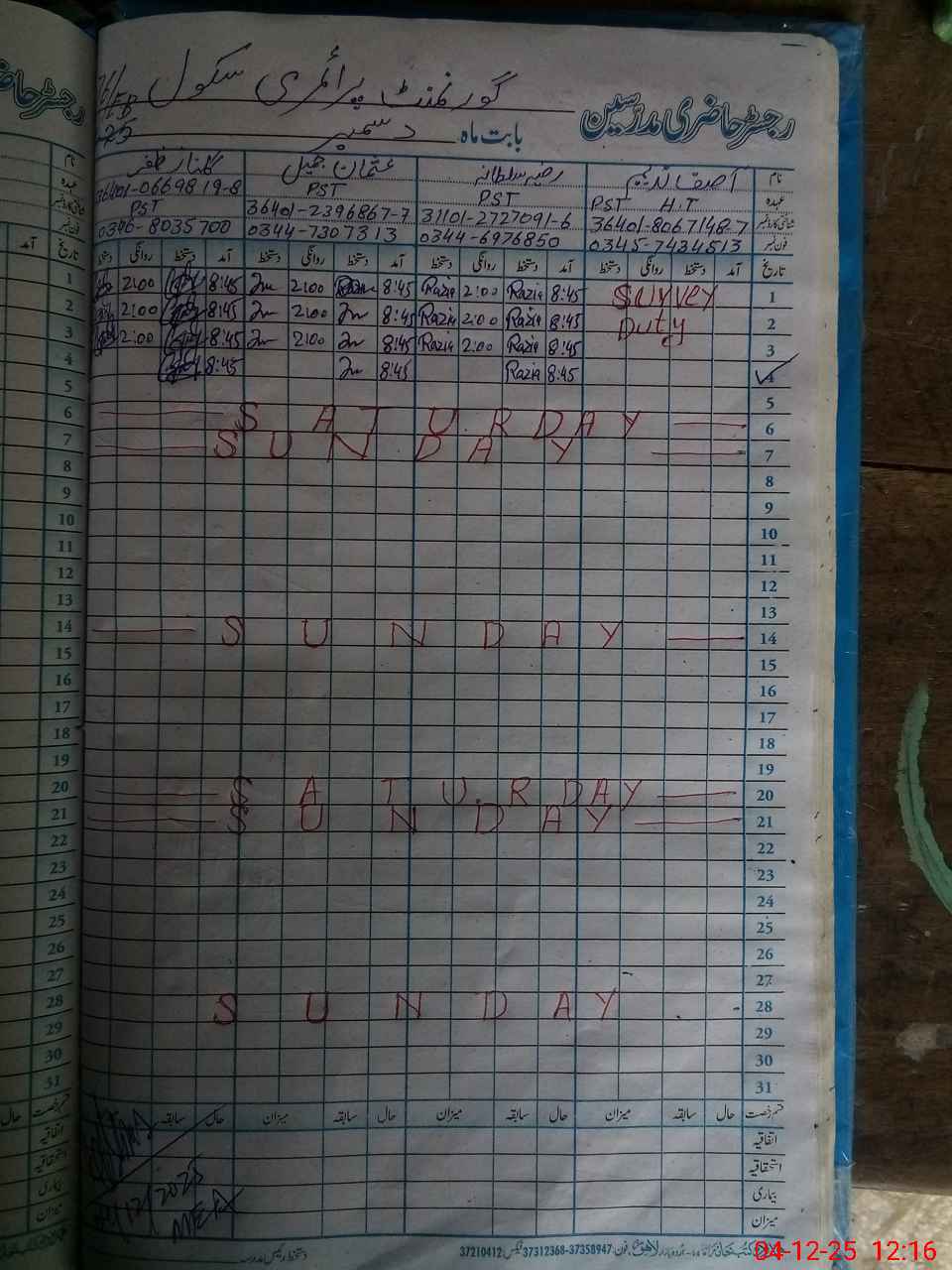 | Name: AS**** NA**** Designation: (School Headmaster's/Headmistress's) PST Phone/Cell Number: 03**** |
