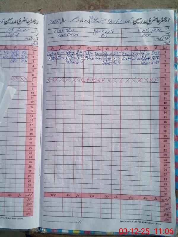 | CNIC | Full Name | Designation | R/C | Absence During Last Calender Month |