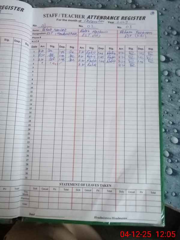 | Attendance Register | Head Teacher | MEA with School | Visit Proof |