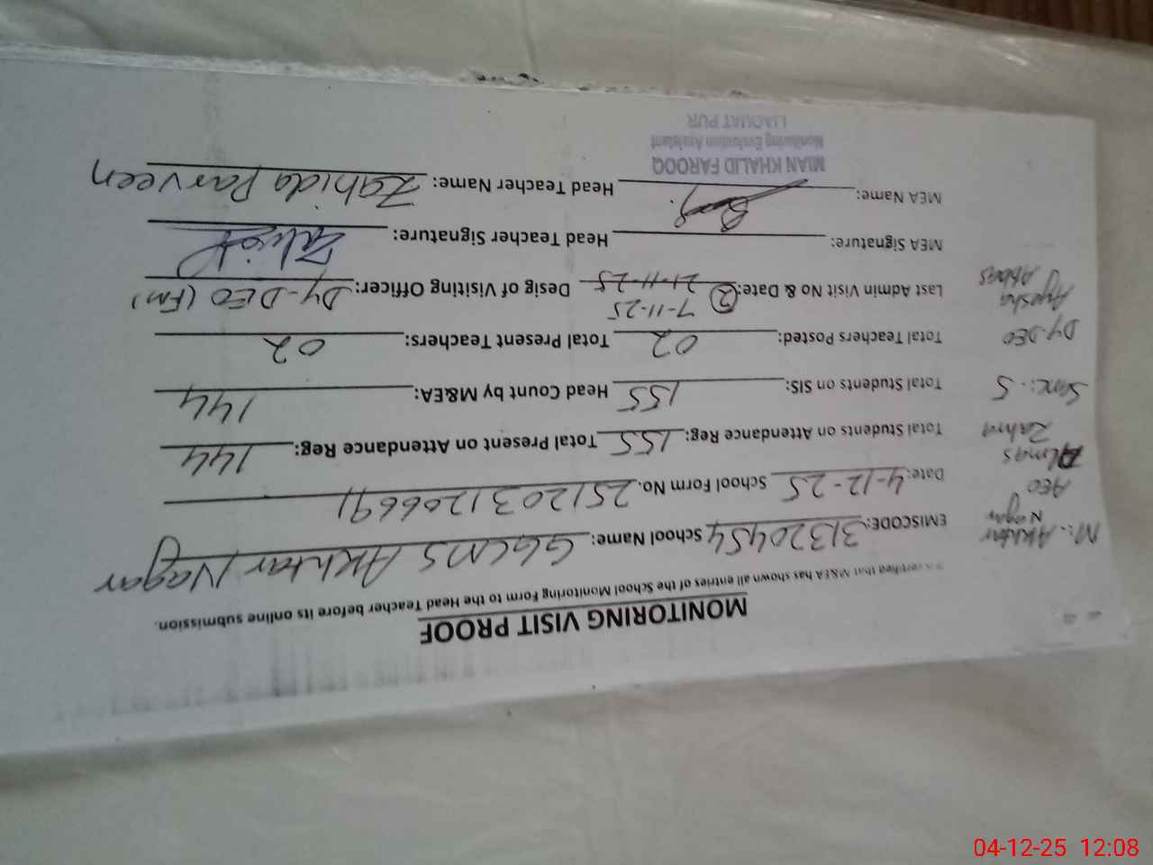 | EMIS Code: 31320454 | Name of School: GGCMS AKHTAR NAGAR | |||