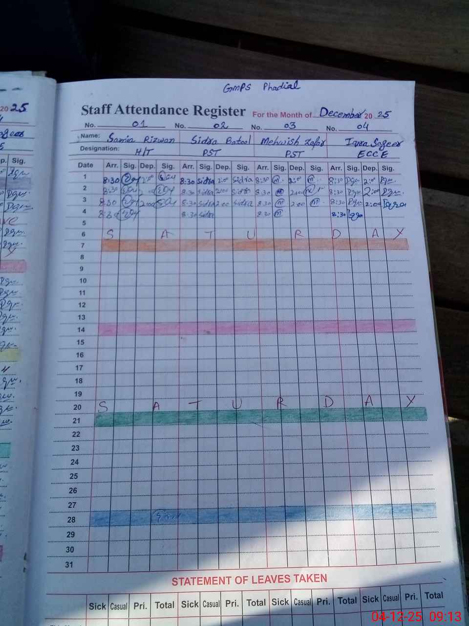 | Leave | Duty | Absent | Maternity | Medical | Ex- Pak |