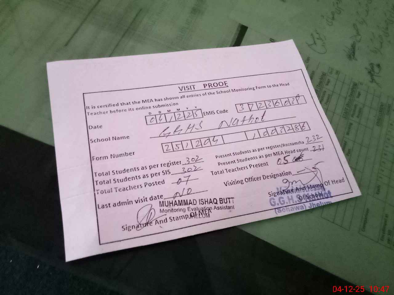 | EMIS Code: 37230039 | Name of School: GGHS NATHOT | |||
