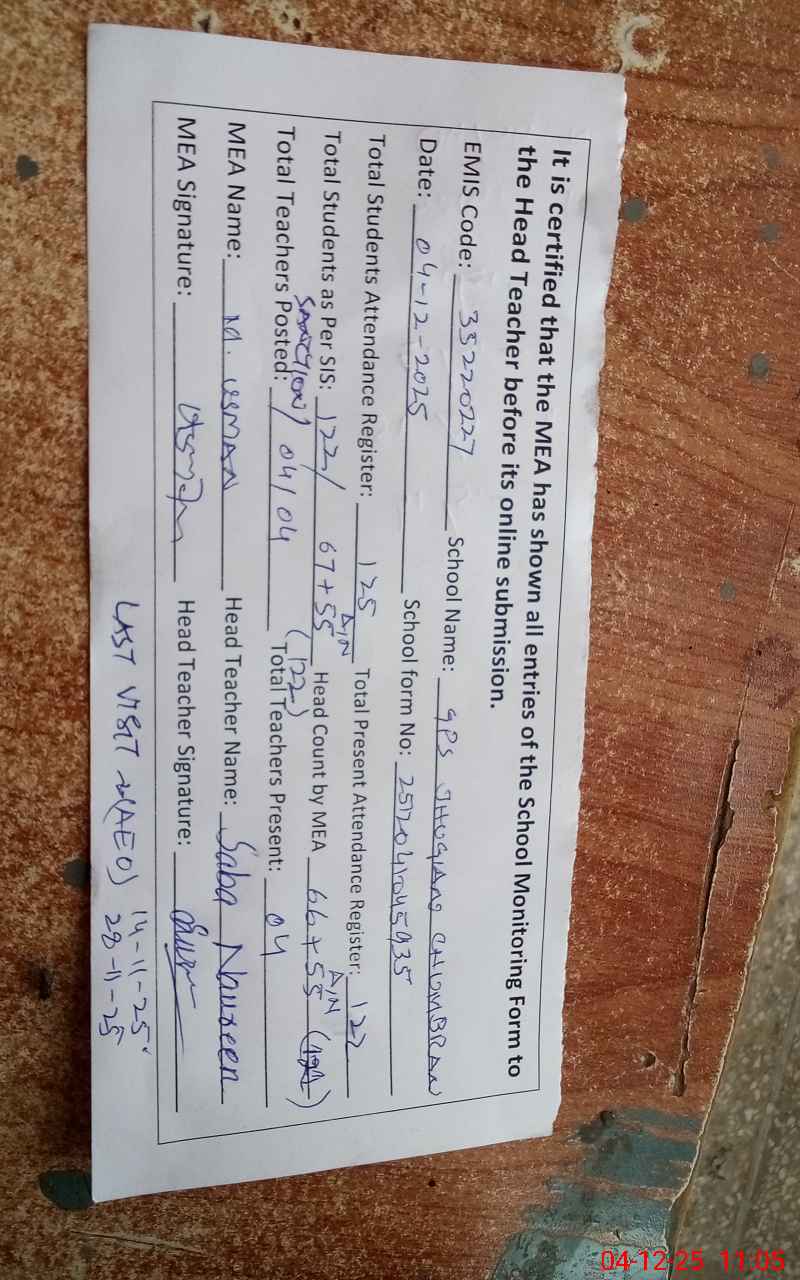 | EMIS Code: 35220227 | Name of School: GPS JHUGIAN CHUMBRAN | |||