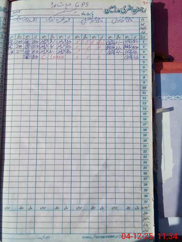 | CNIC | Full Name | Designation | R/C | Absence During Last Calender Month |