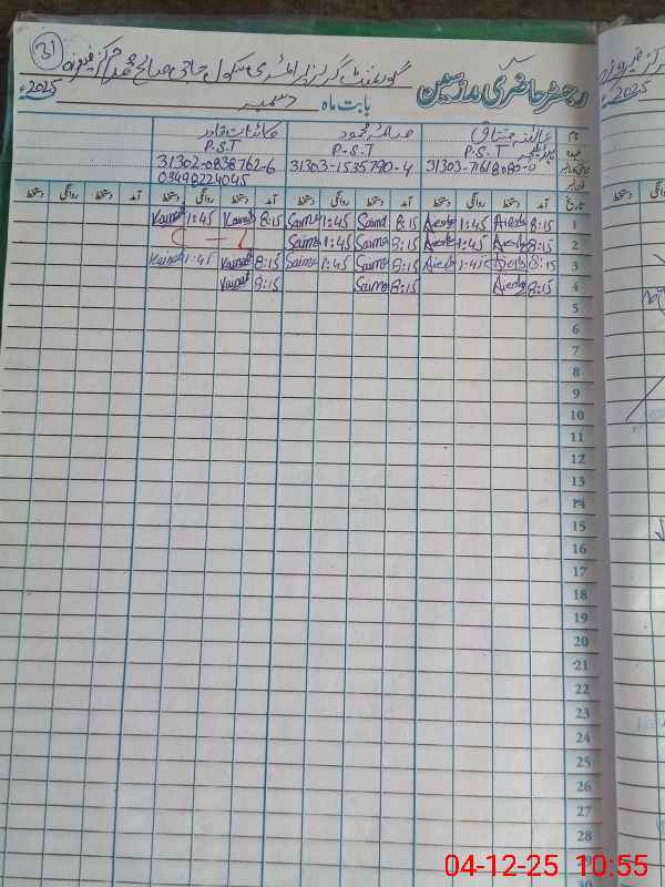 | Name: Ay**** Mu**** Designation: (School Headmaster's/Headmistress's) PST Phone/Cell Number: 03**** |