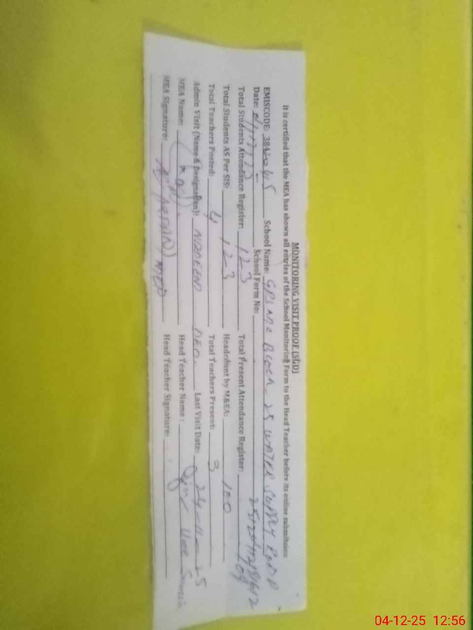 | EMIS Code: 38420415 | Name of School: GPS MC BLOCK NO.25 WATER SUPPLY ROAD SARGODHA | |||