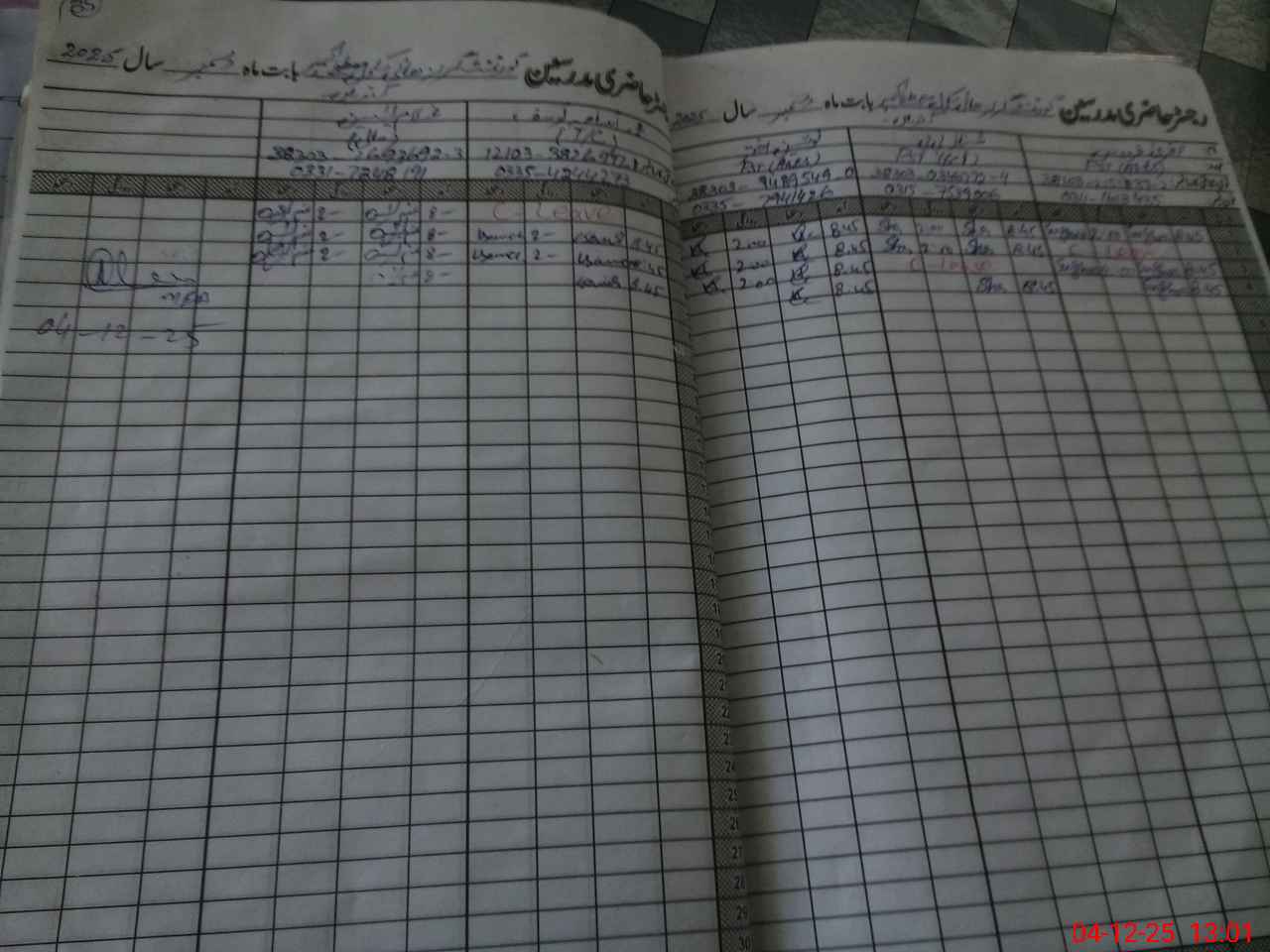 | CNIC | Full Name | Designation | R/C | Absence During Last Calender Month |