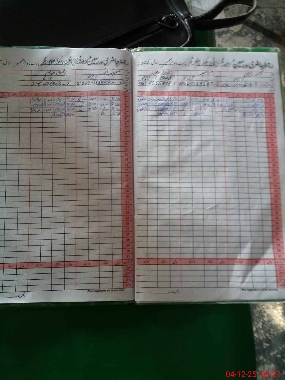 | CNIC | Full Name | Designation | R/C | Absence During Last Calender Month |