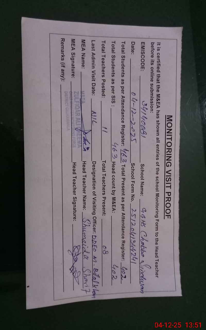 | EMIS Code: 34140081 | Name of School: GGHS CHABAH SINDWAN | |||