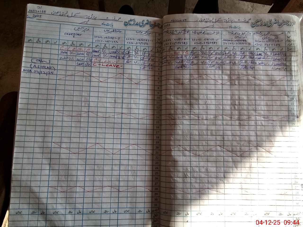 | CNIC | Full Name | Designation | R/C | Absence during last cal. month |