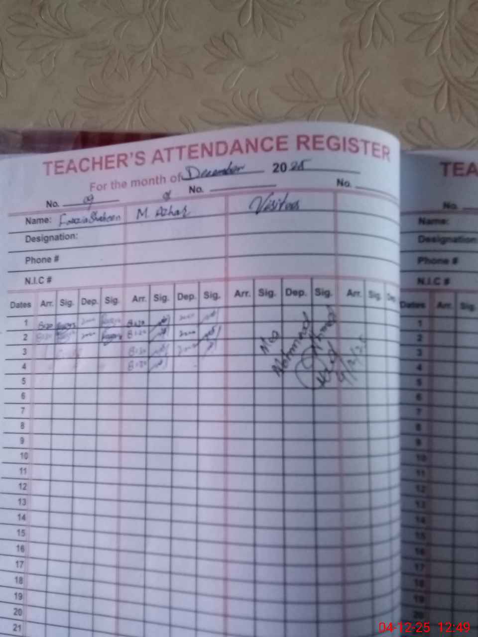 | Name: SY**** FA**** JA**** Designation: (School Headmaster's/Headmistress's) SST GENERAL Phone/Cell Number: 03**** |