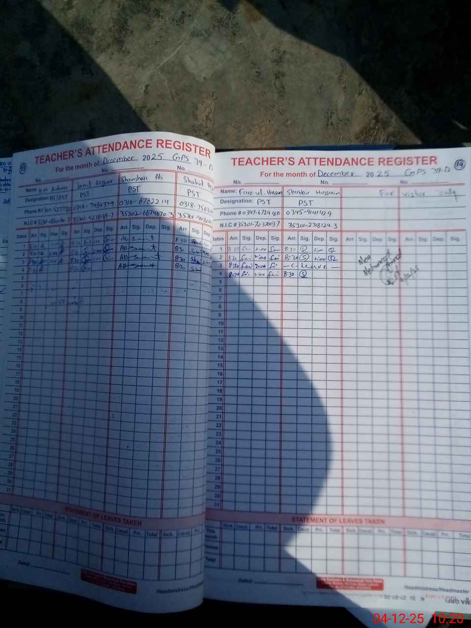 | Name: H.**** Ad**** Li**** Designation: (School Headmaster's/Headmistress's) PST Phone/Cell Number: 03**** |