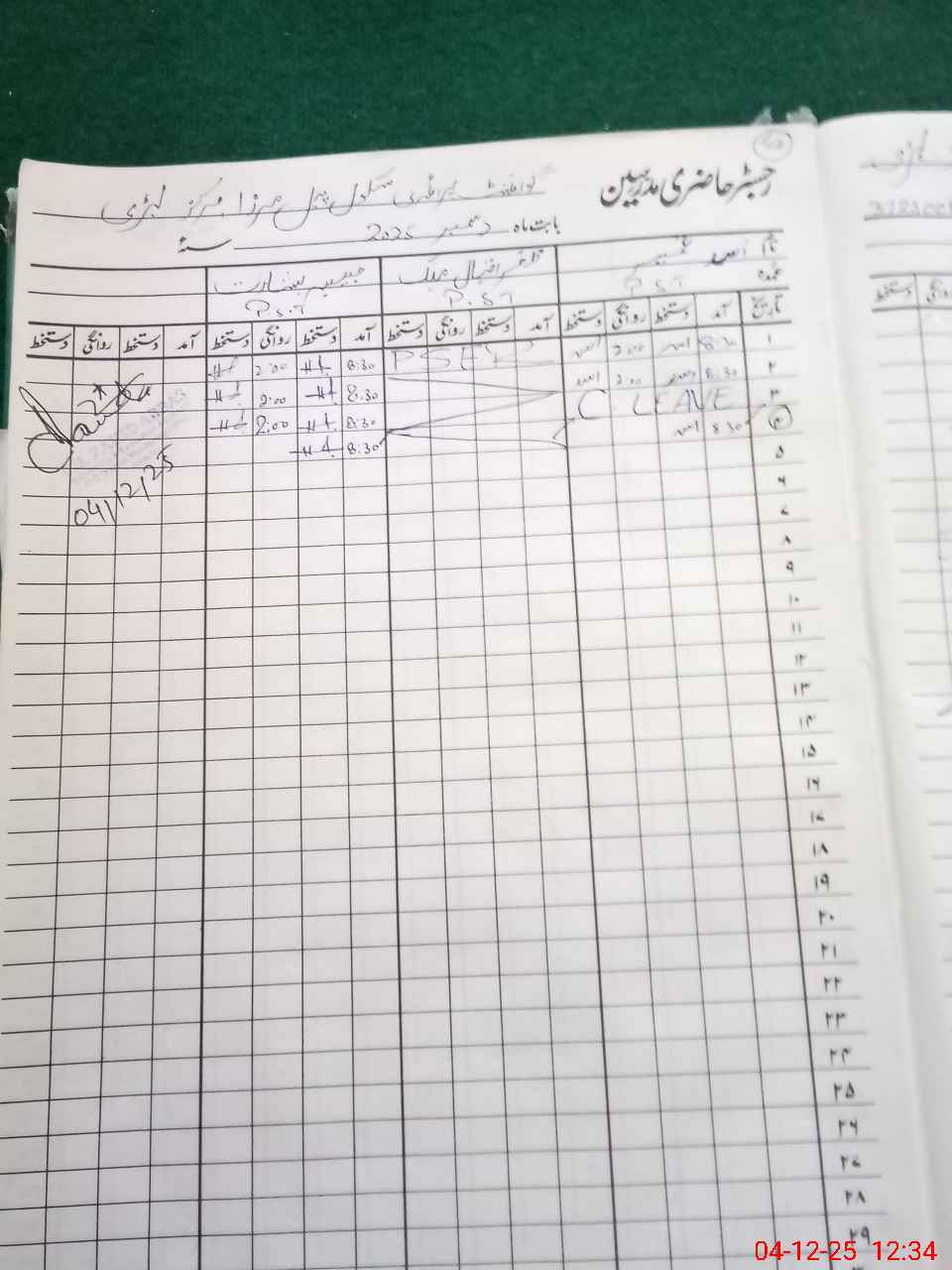 | CNIC | Full Name | Designation | R/C | Absence During Last Calender Month |