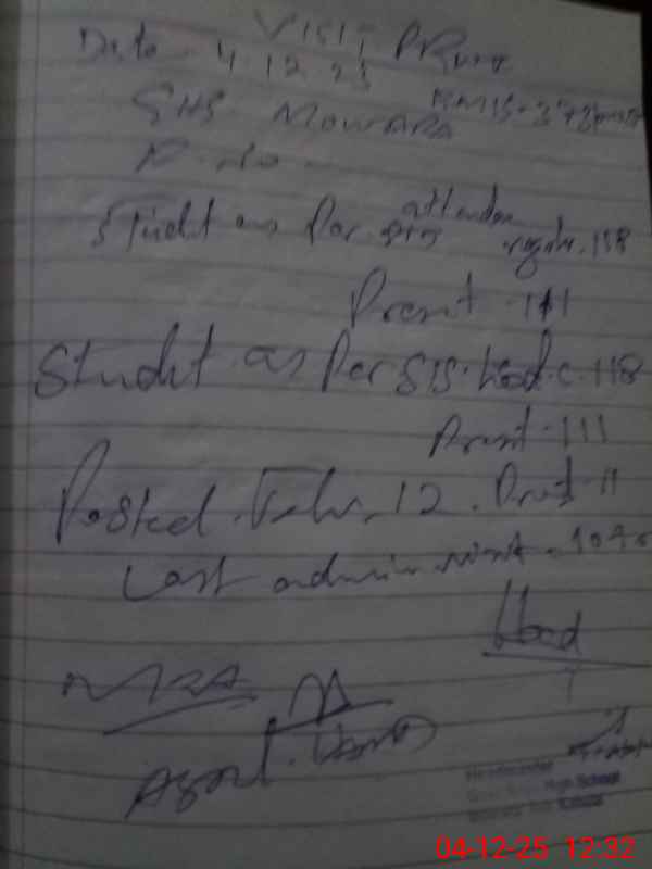 | Attendance Register | Head Teacher | MEA with School | Visit Proof |