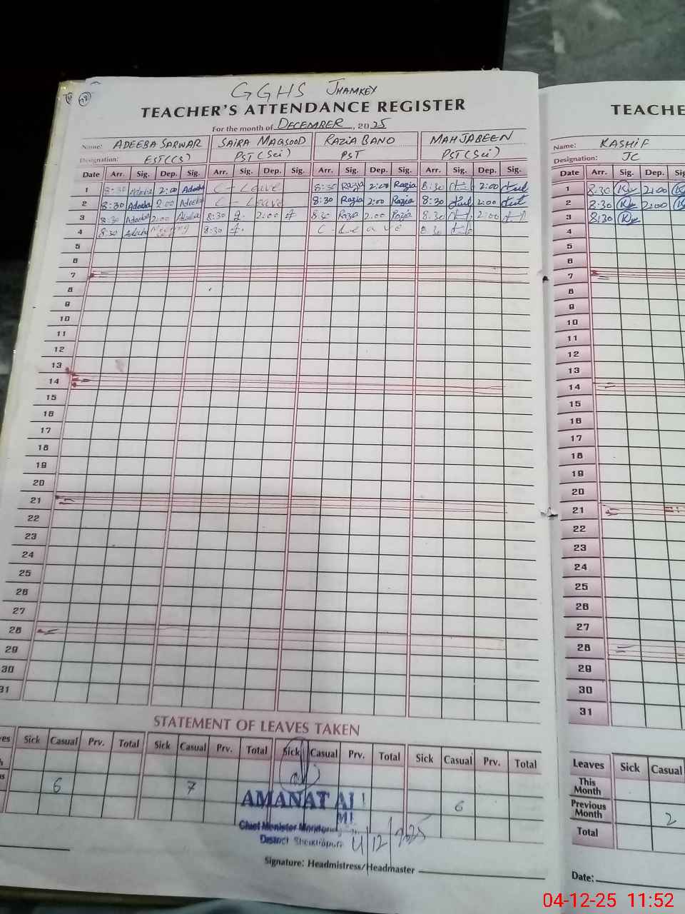| Name: Ha**** Sh**** Designation: (School Headmaster's/Headmistress's) SST ( General ) Phone/Cell Number: 03**** |